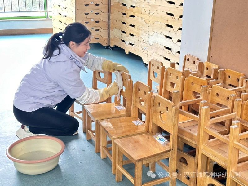 为给孩子们营造一个干净、整洁、舒适的生活学习环境,全体教职工化身“清洁卫士”,分工协作,开展了全方位的环境卫生大扫除。擦拭门窗玻璃、清洗消毒玩教具及桌椅床铺、清理户外杂物、整治卫生死角;厨房工作人员对餐具、厨具进行全面清洗消毒,严格把控食品安全关。忙碌的身影穿梭在幼儿园各处,每一次擦拭、每一次消毒、每一次整理,都承载着老师们对孩子们满满的关爱。